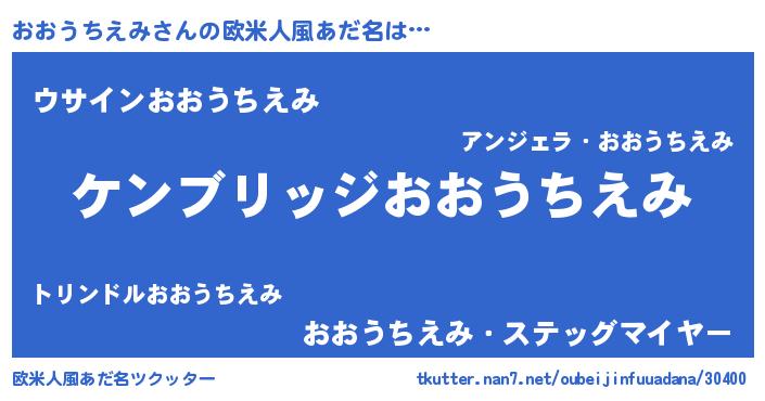 | 男性向けラノベタイトル風あだ名 | 『Re:おおうちえみから始める異世界生活』 |