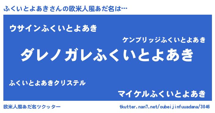 | 意味不明あだ名 | 『住所不定無職ふくいとよあき(74歳)』 |