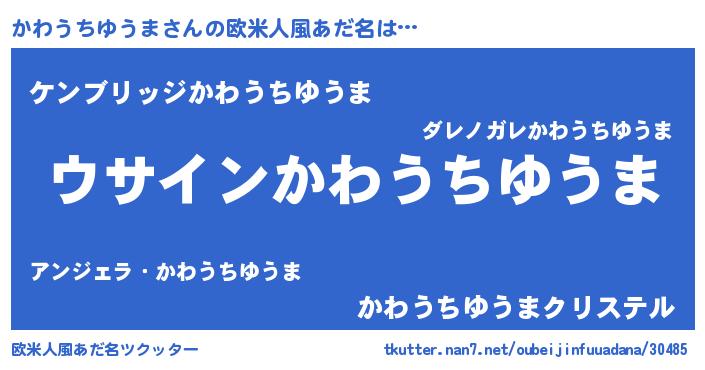 | 男性向けラノベタイトル風あだ名 | 『かわうちゆうまの嫁は女の子じゃないと思った?』 |
