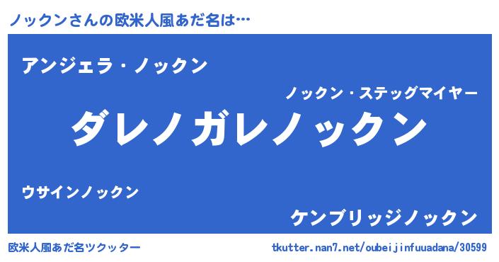 | 男性向けラノベタイトル風あだ名 | 『魔弾の王とノックン』 |