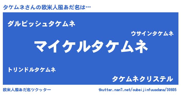 | 男性向けラノベタイトル風あだ名 | 『タケムネアートオンライン』 |