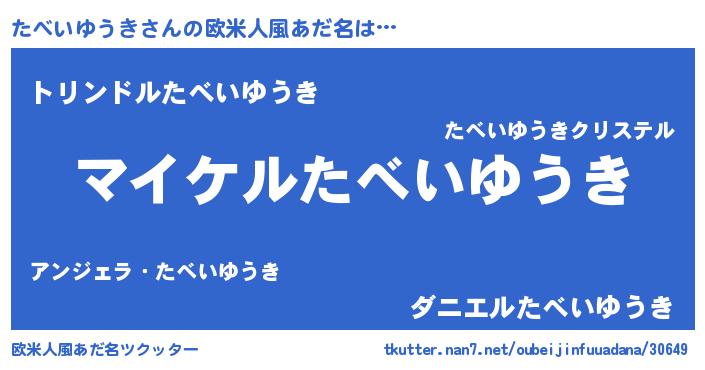 | 男性向けラノベタイトル風あだ名 | 『たべいゆうきの憂鬱』 |