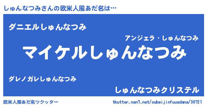 | 男性向けラノベタイトル風あだ名 | 『シュンナツミアートオンライン』 |