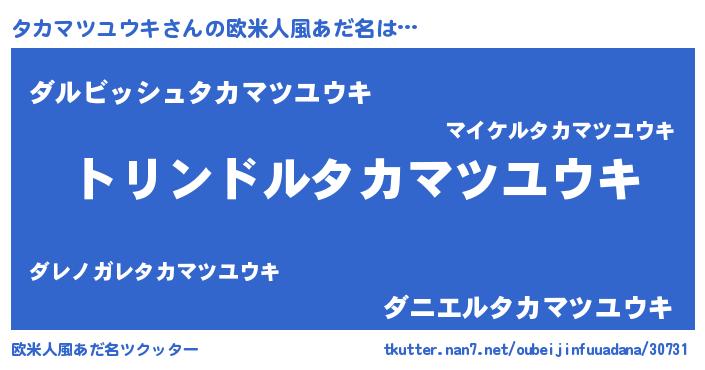 | 男性向けラノベタイトル風あだ名 | 『タカマツユウキ~年齢イコール彼女いない歴の魔法使い~』 |