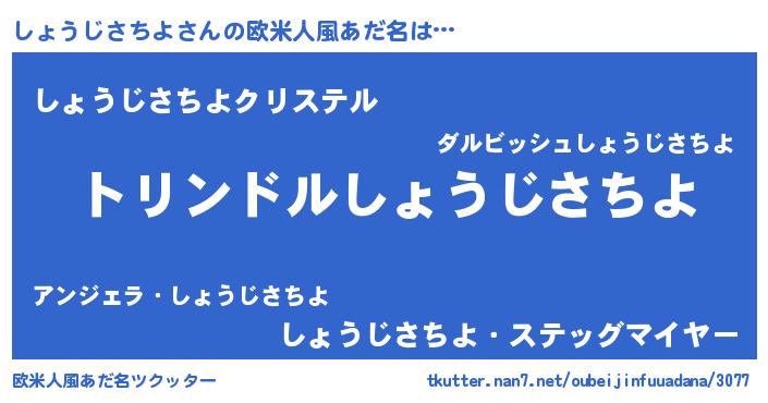 | 女子向けラノベタイトル風あだ名 | 『しょうじさちよの玉の輿計画!』 |
