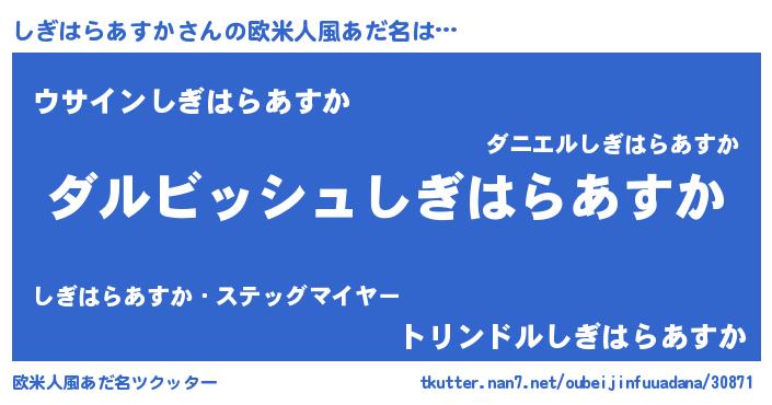 | 胡散臭い通販商品みたいなあだ名 | 『来世でも幸せになれる健康食品…その名も「しぎはらあすか」』 |