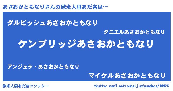 | ヘコむあだ名 | 『あさおかともなり(笑)』『あさもー』 |