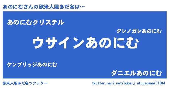 | 男性向けラノベタイトル風あだ名 | 『あのにむの嫁は女の子じゃないと思った?』 |