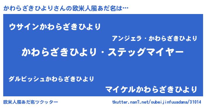 | ヒーロー風カッコイイあだ名 | 『炎刃騎士カワ』『ネオカワラザキヒヨリ』 |