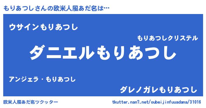 | 男性向けラノベタイトル風あだ名 | 『ノーゲーム・ノーモリアツシ』 |