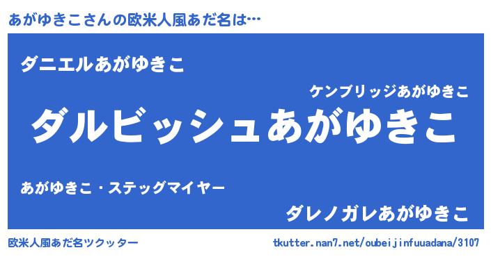 | 男性向けラノベタイトル風あだ名 | 『誰もが恐れるあのあがゆきこが、ぼくの専属メイドになるようです。』 |