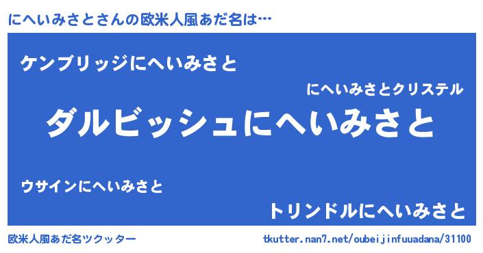 | 女子向けラノベタイトル風あだ名 | 『異世界で失敗しない100のにへいみさと』 |
