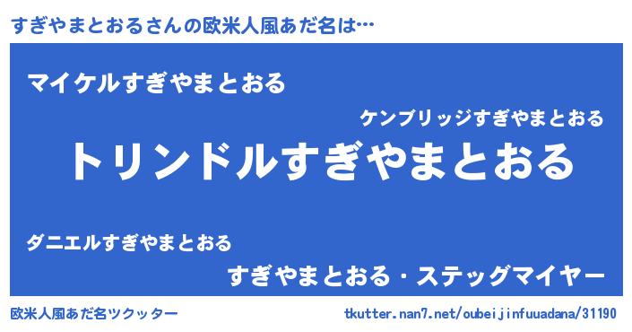 | 胡散臭い通販商品みたいなあだ名 | 『億万長者になれる霊験あらたかなお札…その名も「すぎやまとおる」』 |