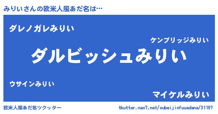 | ファンタジー風あだ名 | 『ミリディッシュ』『ヴァルミリーナ』 |