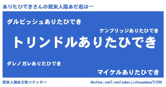 | ヘコむあだ名 | 『ありたひでき(笑)』『ありもー』 |