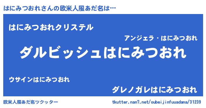 | 意味不明あだ名 | 『永久保存はにみつおれ』 |