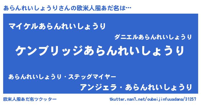 | 意味不明あだ名 | 『自称あらんれいしょうり』 |