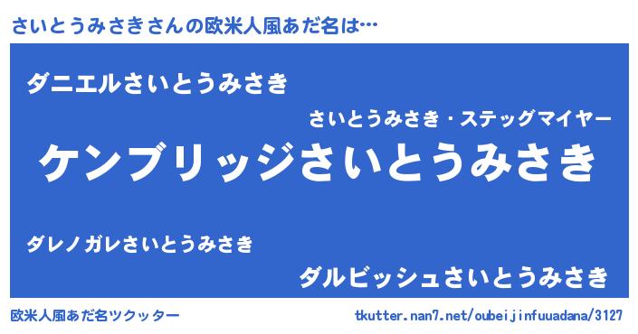 | 男性向けラノベタイトル風あだ名 | 『Re:さいとうみさきから始める異世界生活』 |