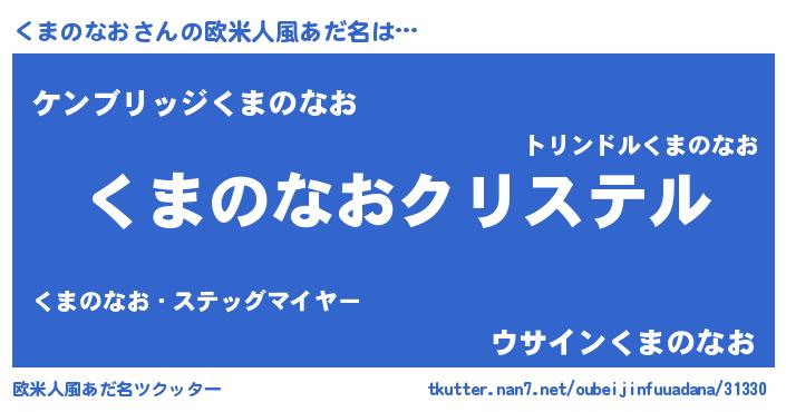 | ファンタジー風あだ名 | 『エターナルクマノナオー』『ゼクマトゥ』 |