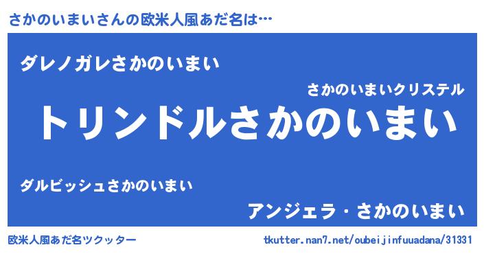 | 男性向けラノベタイトル風あだ名 | 『転生したらさかのいまいだった件』 |