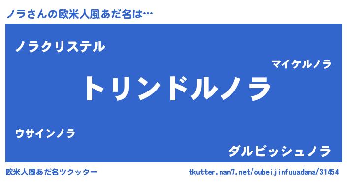 | 女子向けラノベタイトル風あだ名 | 『ノラの玉の輿計画!』『ノラ伯爵の花嫁』 |