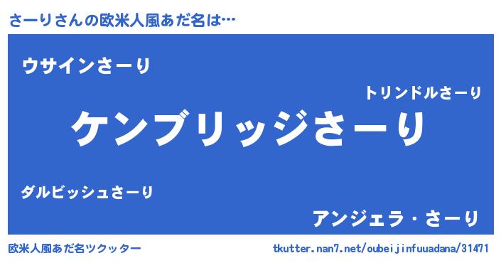 | 男性向けラノベタイトル風あだ名 | 『Re:さーりから始める異世界生活』 |