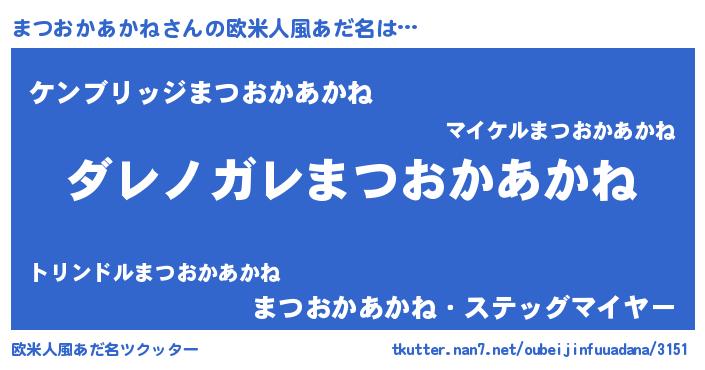 | 恥ずかしいあだ名 | 『マツオカアカネデラックス』『まつちん』 |