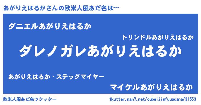 | 意味不明あだ名 | 『住所不定無職あがりえはるか(79歳)』 |