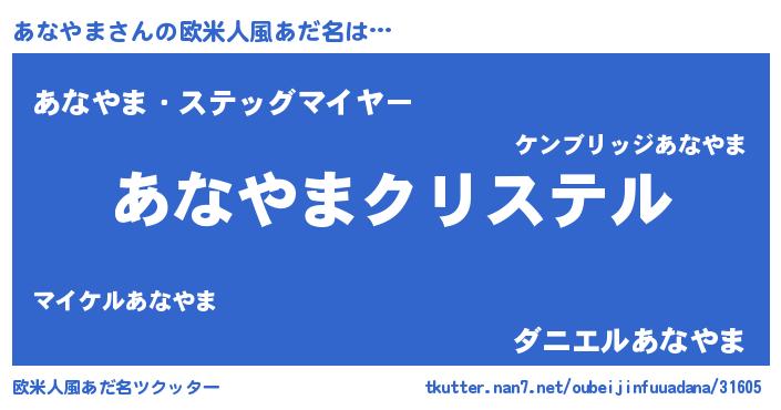 | 女子向けラノベタイトル風あだ名 | 『あなやま伯爵の花嫁』『あなやま恋絵巻』 |