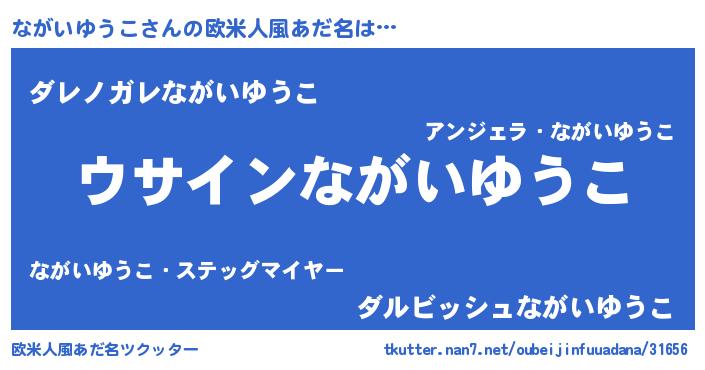 | 男性向けラノベタイトル風あだ名 | 『ながいゆうこの嫁は女の子じゃないと思った?』 |