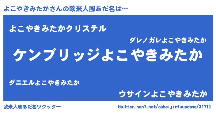 | 意味不明あだ名 | 『自称よこやきみたか』 |