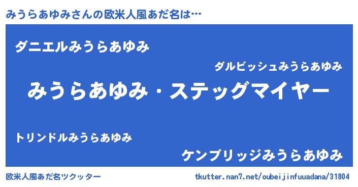 | 男性向けラノベタイトル風あだ名 | 『うちのみうらあゆみが世界を掌握している!』 |