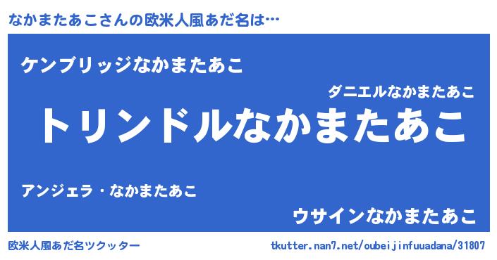 | 女子向けラノベタイトル風あだ名 | 『なかまたあこの玉の輿計画!』 |