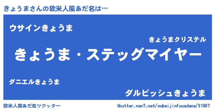 | 意味不明あだ名 | 『とにかく怪しいきょうま』 |