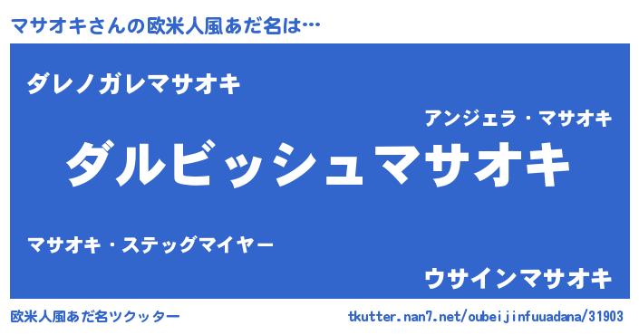 | 男性向けラノベタイトル風あだ名 | 『誰もが恐れるあのマサオキが、ぼくの専属メイドになるようです。』 |