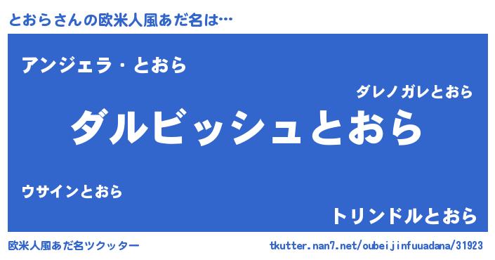 | 男性向けラノベタイトル風あだ名 | 『とおらという概念が存在しない退屈な世界 』 |