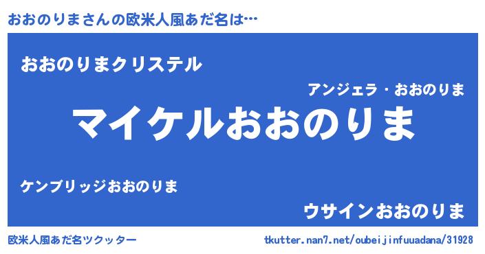 | 男性向けラノベタイトル風あだ名 | 『おおのりまの憂鬱』 |