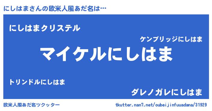 | 男性向けラノベタイトル風あだ名 | 『にしはまの憂鬱』『ニシハマスレイヤー』 |