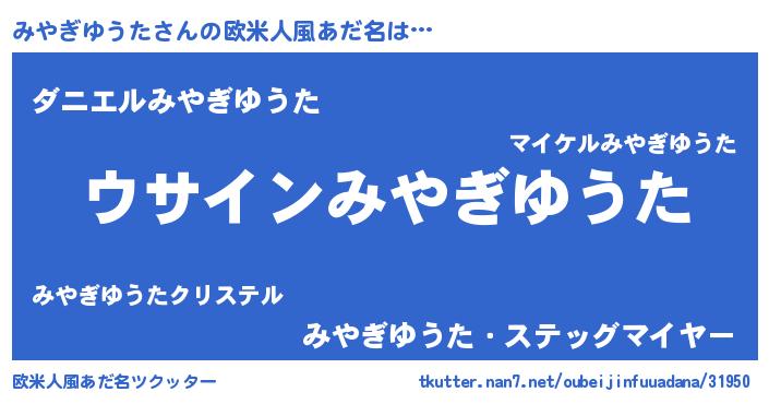 | 男性向けラノベタイトル風あだ名 | 『みやぎゆうたの嫁は女の子じゃないと思った?』 |