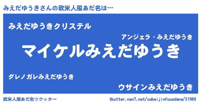 | 男性向けラノベタイトル風あだ名 | 『ミエダユウキアートオンライン』 |