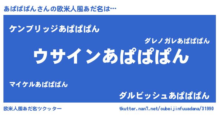 | ポケモン風あだ名 | 『ヒアパパパン』『アパセウス』 |