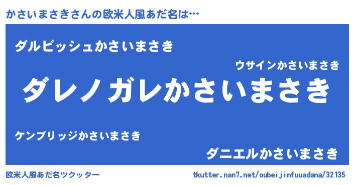 | 男性向けラノベタイトル風あだ名 | 『魔弾の王とかさいまさき』 |