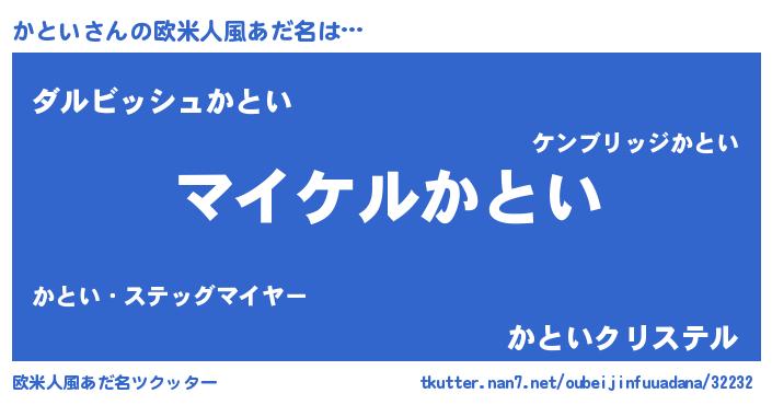 | 男性向けラノベタイトル風あだ名 | 『かといの憂鬱』『魔法科高校のかとい』 |