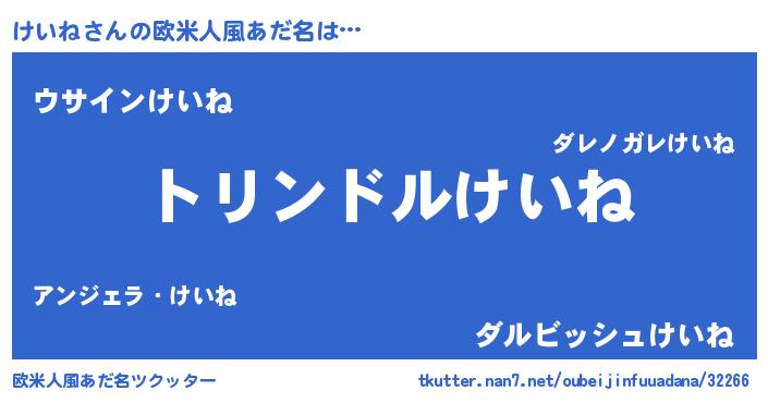 | 男性向けラノベタイトル風あだ名 | 『けいね~年齢イコール彼女いない歴の魔法使い~』 |
