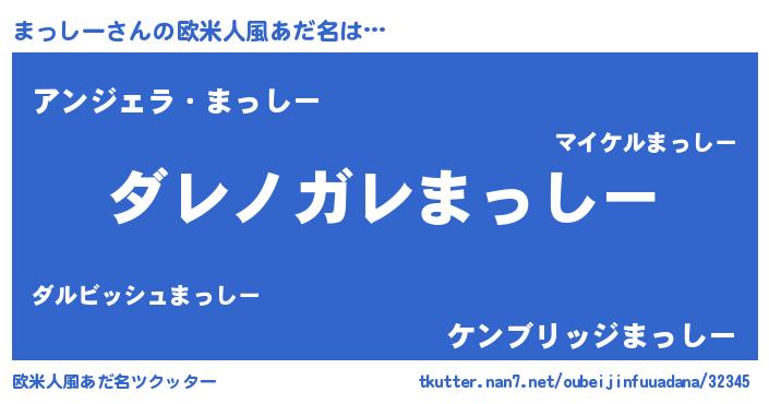 | 男性向けラノベタイトル風あだ名 | 『魔弾の王とまっしー』『まっしーの憂鬱』 |