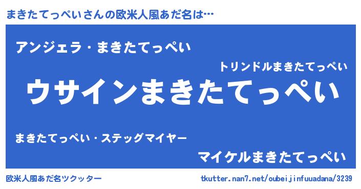 | 女子向けラノベタイトル風あだ名 | 『まきたてっぺいは平凡を望む』 |
