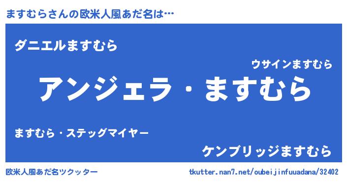 | 男性向けラノベタイトル風あだ名 | 『ますむらに滅ぼされるだけの簡単なお仕事です』 |