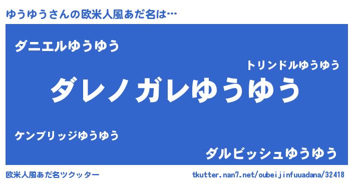 | 男性向けラノベタイトル風あだ名 | 『この素晴らしい世界にゆうゆうを!』 |