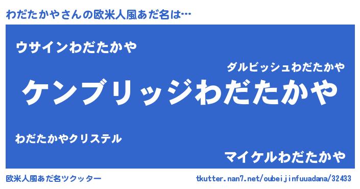 | 男性向けラノベタイトル風あだ名 | 『魔法科高校のわだたかや』 |
