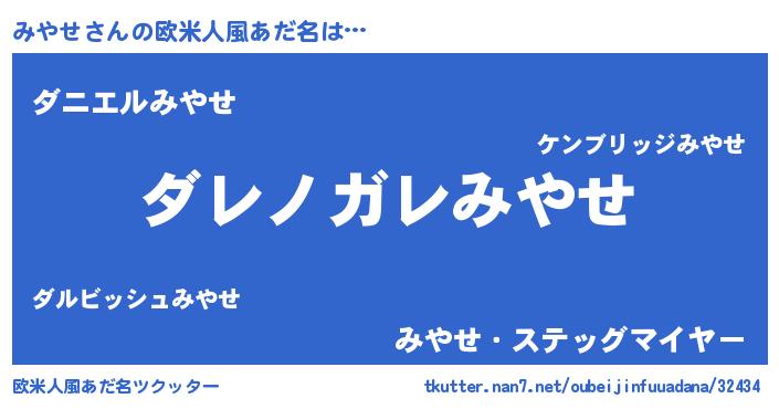 | ヘコむあだ名 | 『みやせ(笑)』『みやふぇ~』『豆乳』 |